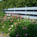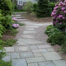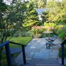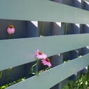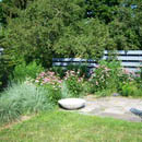 Interesting spaces, color and a complete sense of privacy were the goals in the design of the small Beacon property, all within the context of a very low maintenance planting. The blue fences project out from the blue clapboards of the house, embracing the plantings and unifying the house with the landscape.