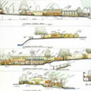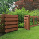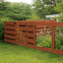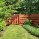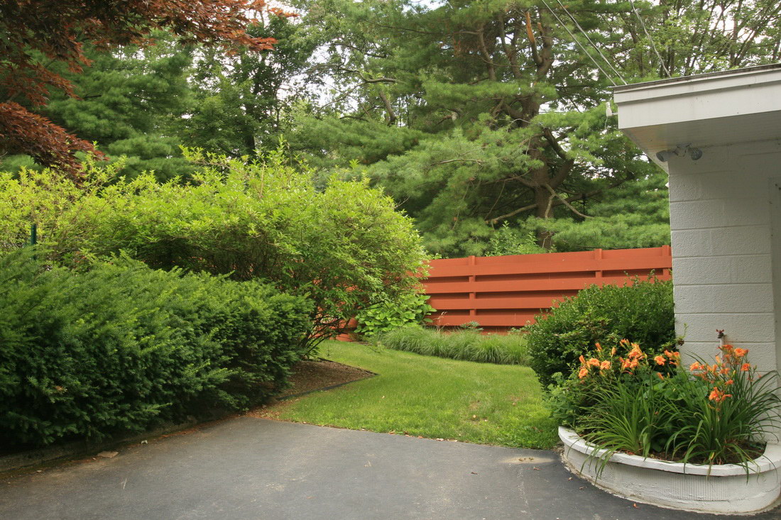 The solution was a playful series of modernistic fences and gates, along with retaining walls and a large gracious staircase leading down to the water from an upper deck off the kitchen. The plantings and fences supported varying needs for privacy screening and transparency; they defined and connected smaller individual spaces around the house, and added interest and intrigue to the experience of this small lakefront plot. At the lower level of the lake the yard was improved with a covered sitting area under the deck which formerly served as surplus storage.